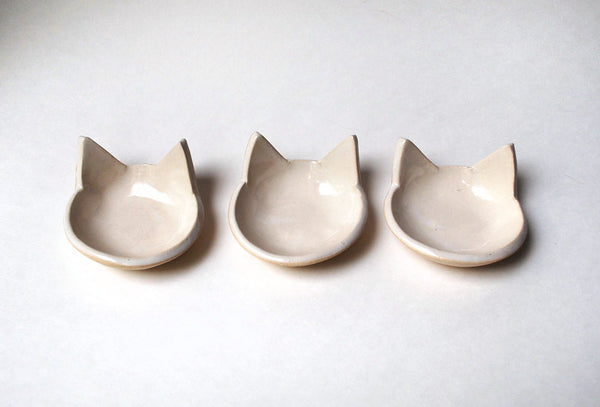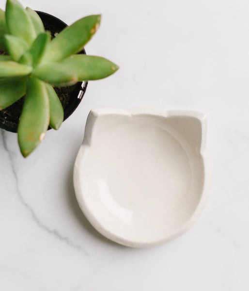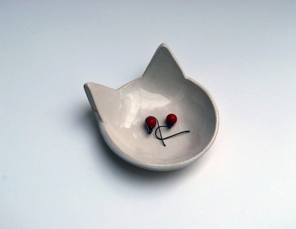 A cute little white cat dish! This handmade ceramic dish is perfect as a ring dish, jewelry dish, little spoon rest or tea bag rest. Makes a great gift for cat lovers!